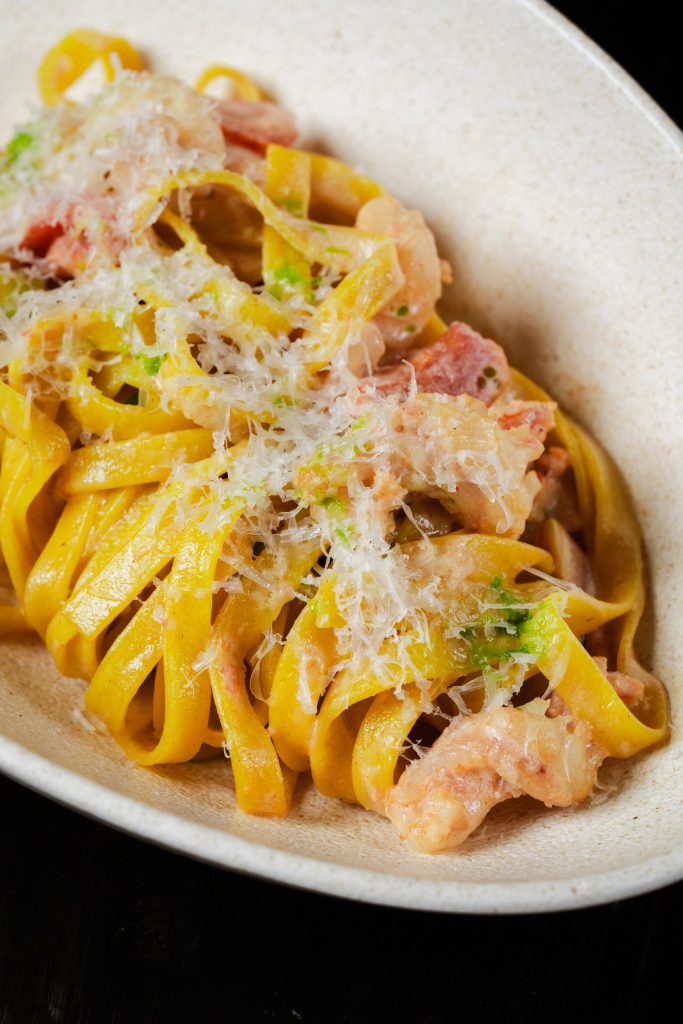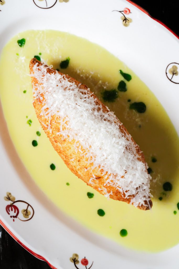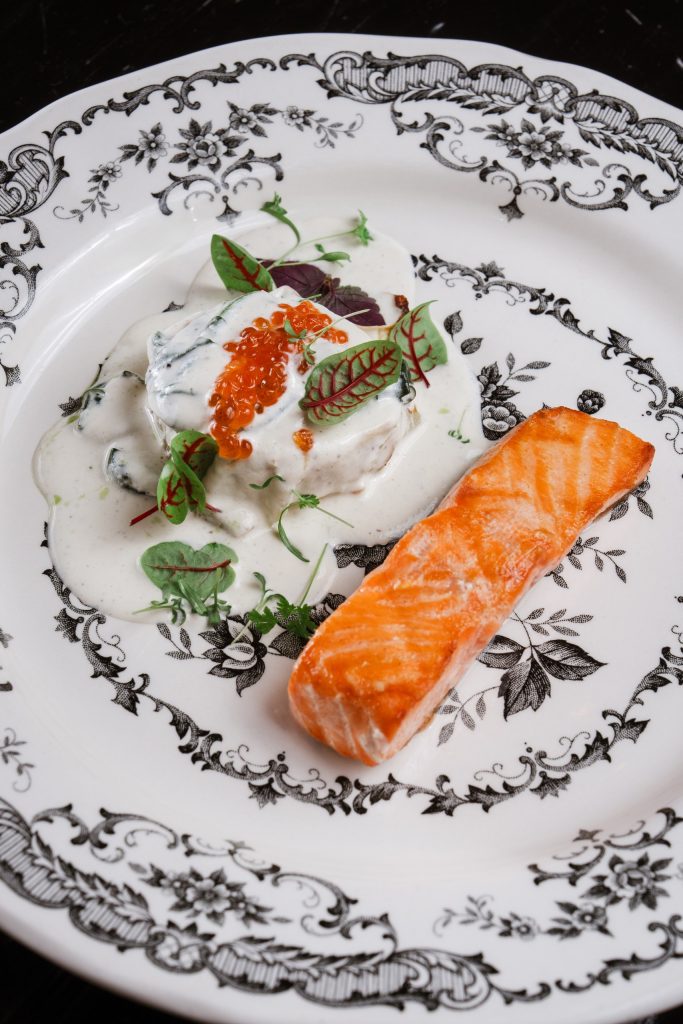 Щучья икра смешивается со сливками. Подается с домашней хрустящей фокаччей и сливочным маслом, что делает блюдо идеальным не только для одного гостя, но и целой компании.