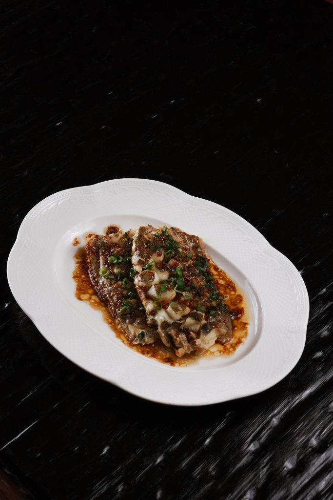 Трепанг быстро обдается горячим солевым раствором, затем смешивается с соевым соусом. В завершение добавляется зеленый лук, придающий блюду свежий акцент. Это простой и вкусный вариант морской закуски.
